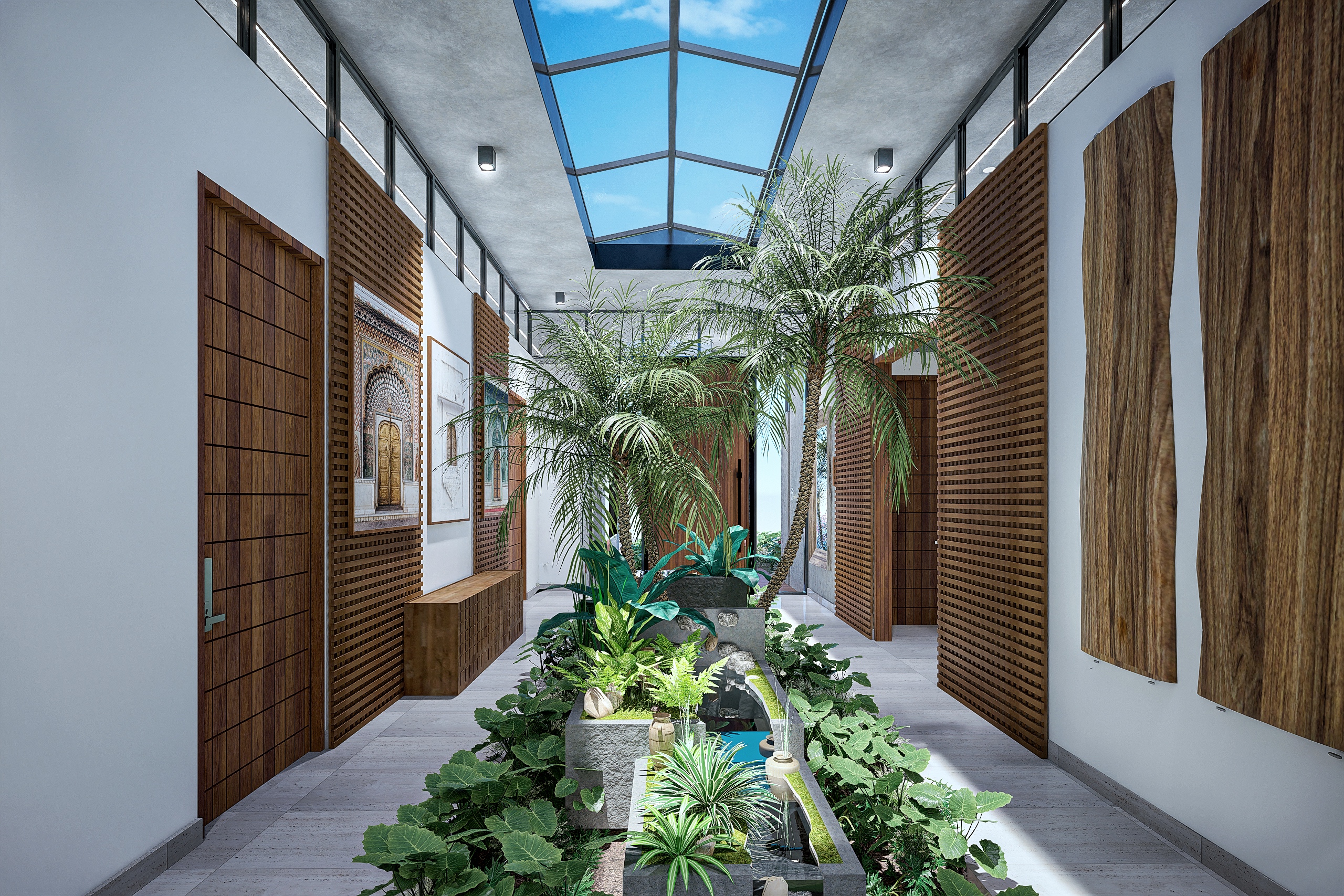 Con un gran Salón Social que es el epicentro de la actividad en la residencia. Integrando la cocina fría y la apertura hacia el exterior, este espacio maximiza al máximo las relaciones familiares e interpersonales. Las habitaciones se conectan con espacios privados, cada uno con su jardín exclusivo, y están equipadas con acabados de alta calidad en los baños y armarios.